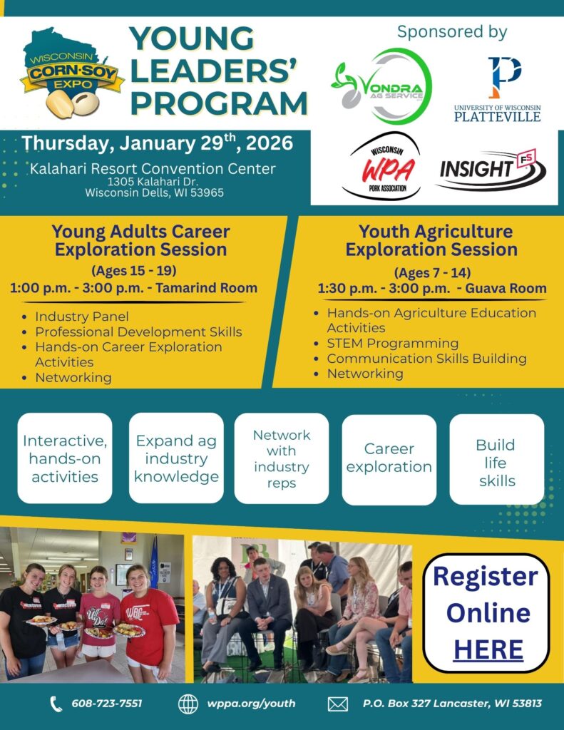 The Wisconsin Corn•Soy Expo is Wisconsin’s premier grower event with more than 1,200 corn and soybean growers and pork producers attending. Hosted by the Wisconsin Soybean Association, the Wisconsin Corn Association and the Wisconsin Pork Association, the two-day trade show and educational program offers attendees a robust experience with ample opportunities to network with more than 120 companies at the Kalahari Resort in Wisconsin Dells.
